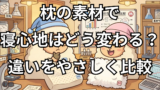 枕の素材は、寝心地・耐久性・体への負担に大きく影響します。現在市場に出ている主な素材を簡単に整理すると——